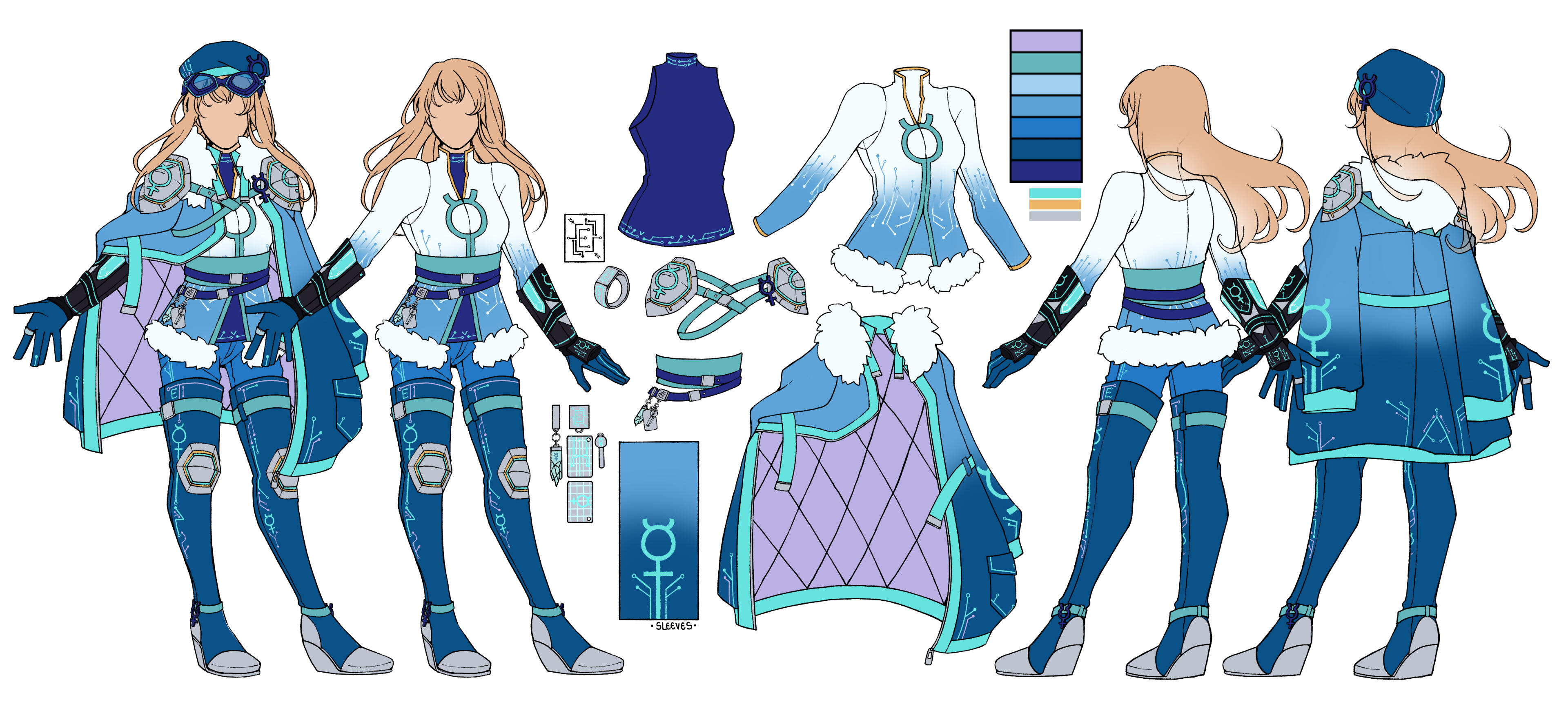 Character and outfit design service is available for those interested. The design price is roughly +10-50% of the style type you pick for the main piece. But if you want a clear character sheet like samples below, please let me know in the form and we will discuss the price accordingly.